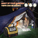 This generator comes with three LED bulbs, each with an individual switch and a 10ft (3m) extension cord, allowing you to customize lighting for any space. One bulb can illuminate continuously for 30 hours, two bulbs for 14 hours, and all three for 8 hours—ideal for creating a cozy, well-lit environment during outdoor nights or indoor power interruptions. The built-in 3W output lamps provide efficient lighting while conserving energy.
