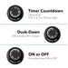 - Integrated countdown and dusk-to-dawn control dial