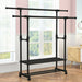 The double poles give you more room to hang coats, dresses, and scarves, while the bottom shelf is great for shoes, boots, or storage bins. Placing items on the bottom also helps keep the rack steady and secure.
