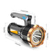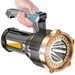Equipped with three brightness settings (high, low, and flash), this handheld spotlight gives you the perfect light for every task. The focused front beam is ideal for navigating in the dark, while the practical side floodlight can be used as a desk lamp, work light, or camping lantern. Whether you’re setting up a tent, walking the dog at night, or inspecting your car, this flashlight adapts to your needs effortlessly.