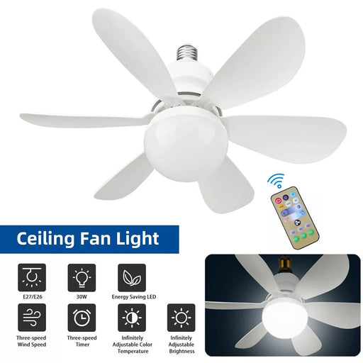 View full details2-in-1 Ceiling Fan Light with Remote Control – Adjustable Speeds & Dimmable LED Lighting Upgrade your home with the 2-in-1 Ceiling Fan Light, a...