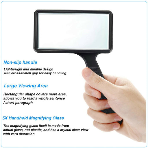 View full details5X Handheld Magnifying Glass with Large Lens - Ergonomic Non-Slip Handle for Reading, Hobbies & Inspection Experience clarity and comfort like ...